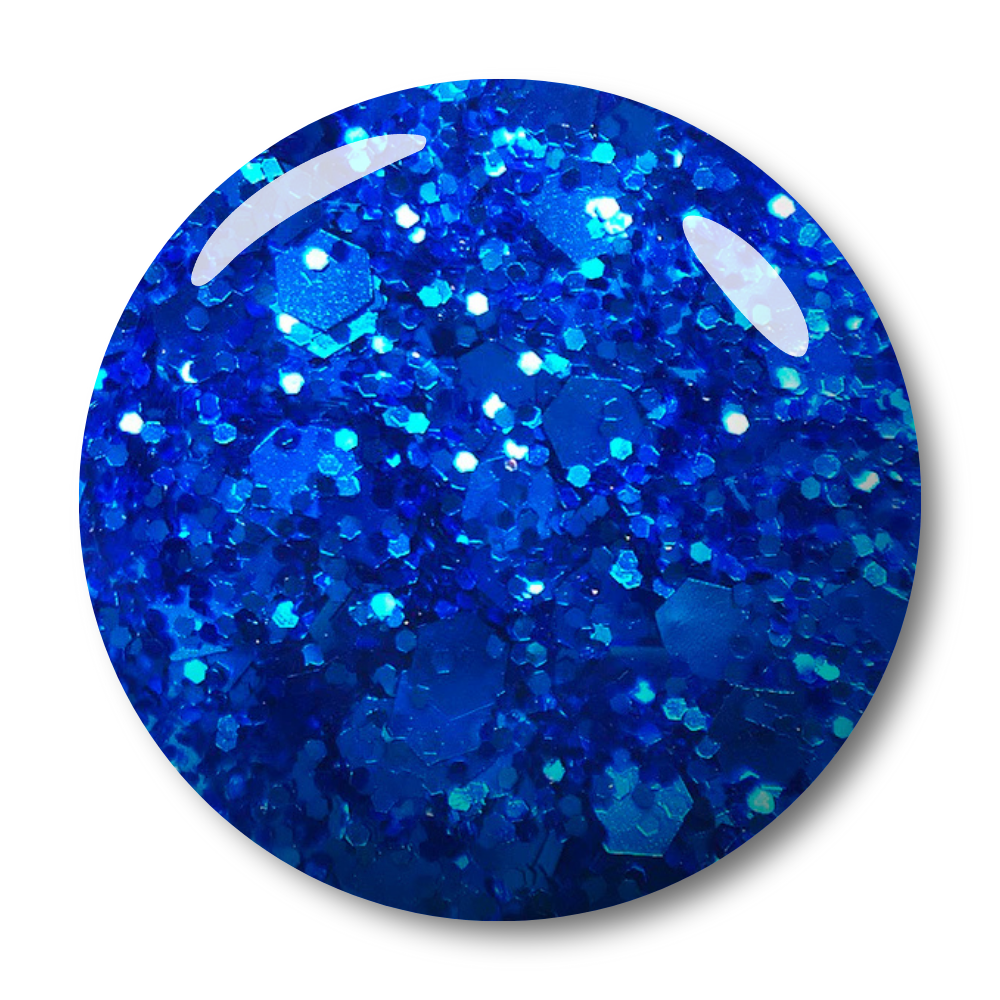 A vivid electric blue packed with bold chunky glitter and radiant shimmer.