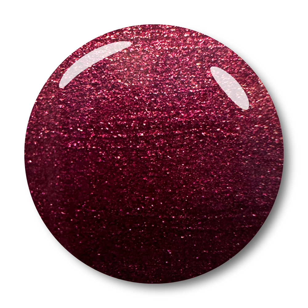 A deep berry wine with warm undertones. The fine shimmer gives it a velvety, metallic sheen that glows in the light.