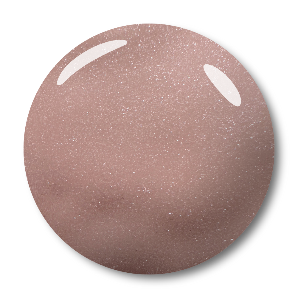 A muted taupe brown with cool, silvery micro-shimmer. Soft metallic finish with an understated elegance.
