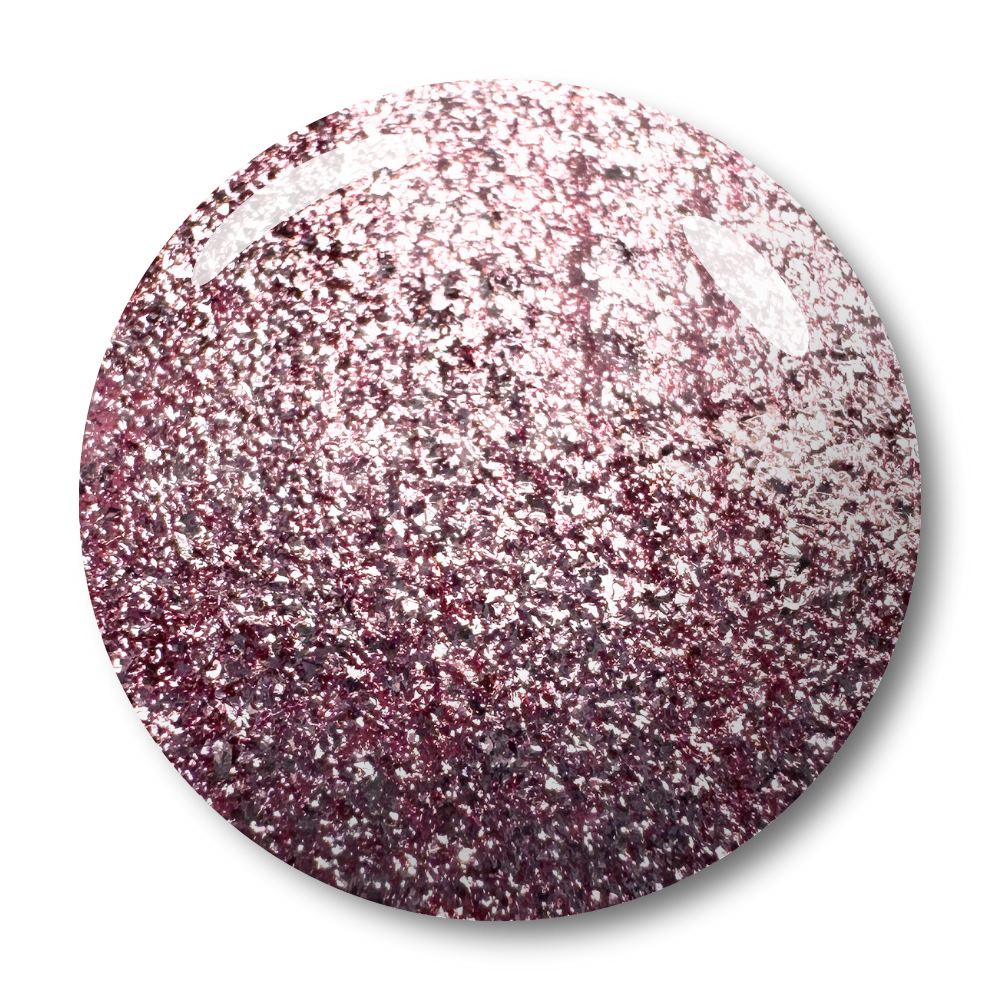A shimmering rose pink glitter with cool undertones. Metallic foil flakes create a luminous, sparkling finish.