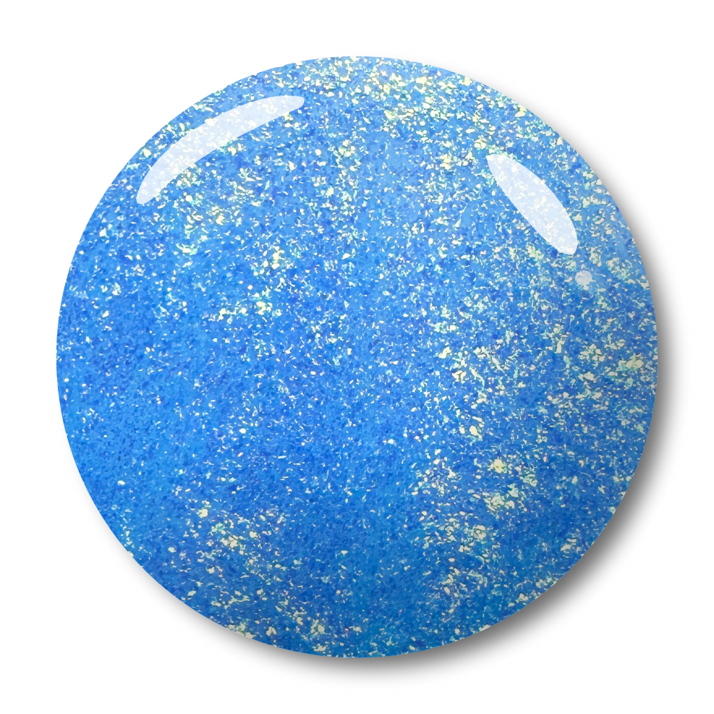A bright sky blue with cool undertones, layered with soft golden shimmer. Shimmer finish with a delicate, icy glow.