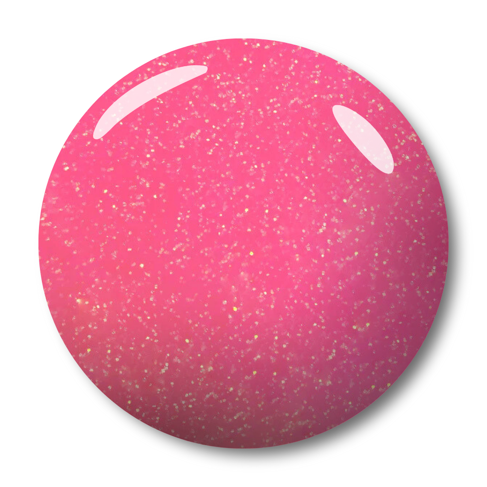 Bright bubblegum pink with golden microshimmer. Warm, radiant, and twinkling.