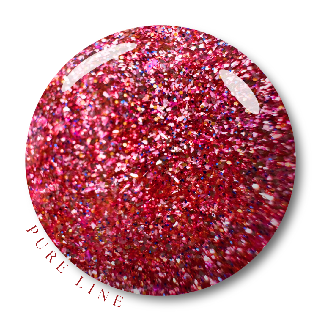 A hot raspberry-pink glitter packed with iridescent red, magenta, and violet flakes. Bright, fiery, and unapologetically bold.