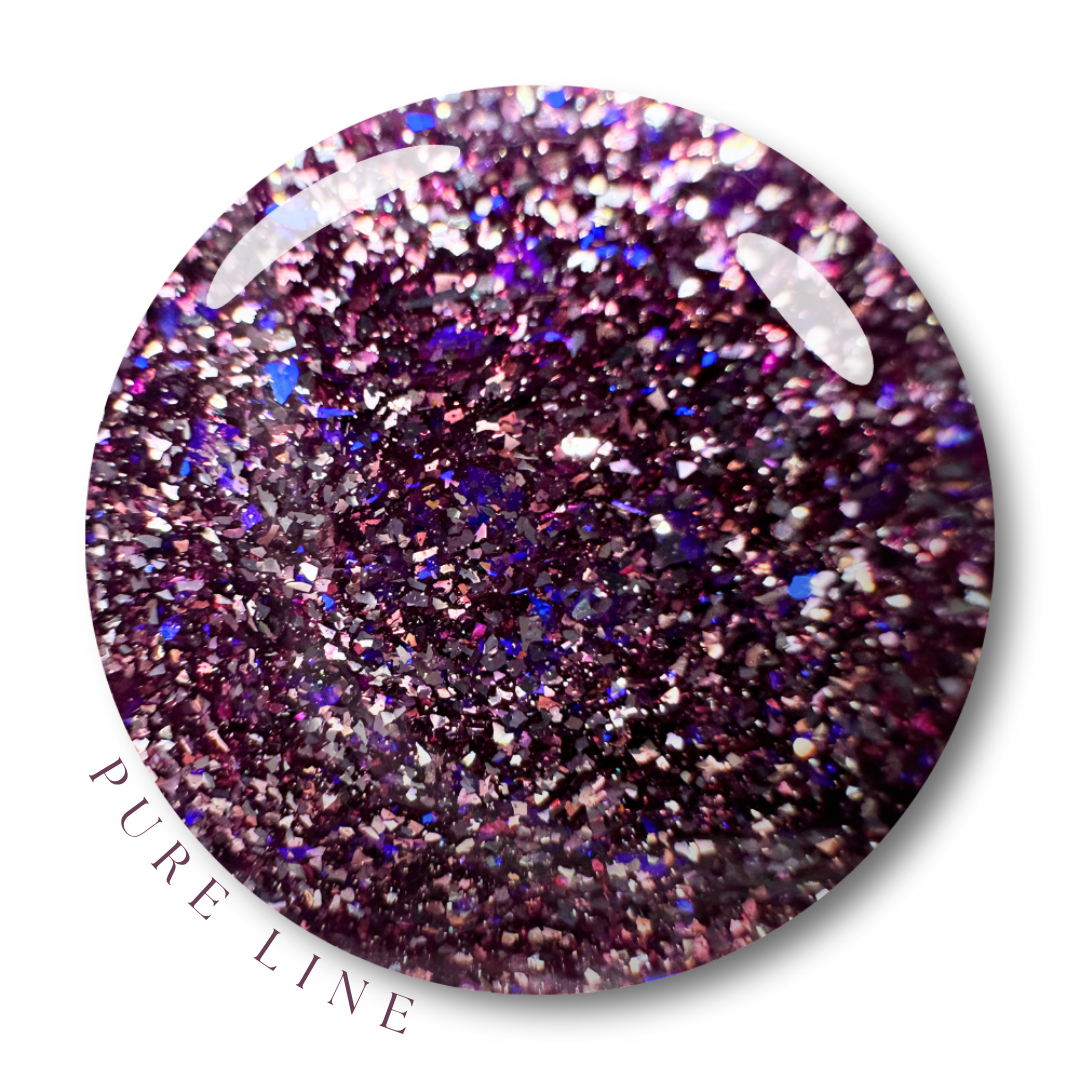 A rich royal purple base layered with fuchsia and cobalt glitters. Bold, theatrical, and bursting with warm and cool colour shifts.