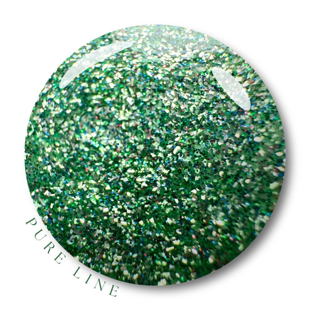 A radiant kelly green glitter bomb with cool undertones. Dense reflective particles give it a high-intensity shine and dimensional pop.