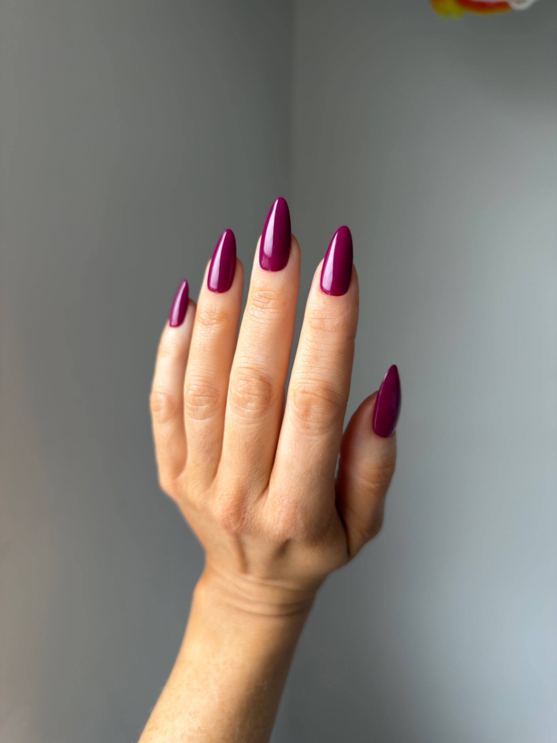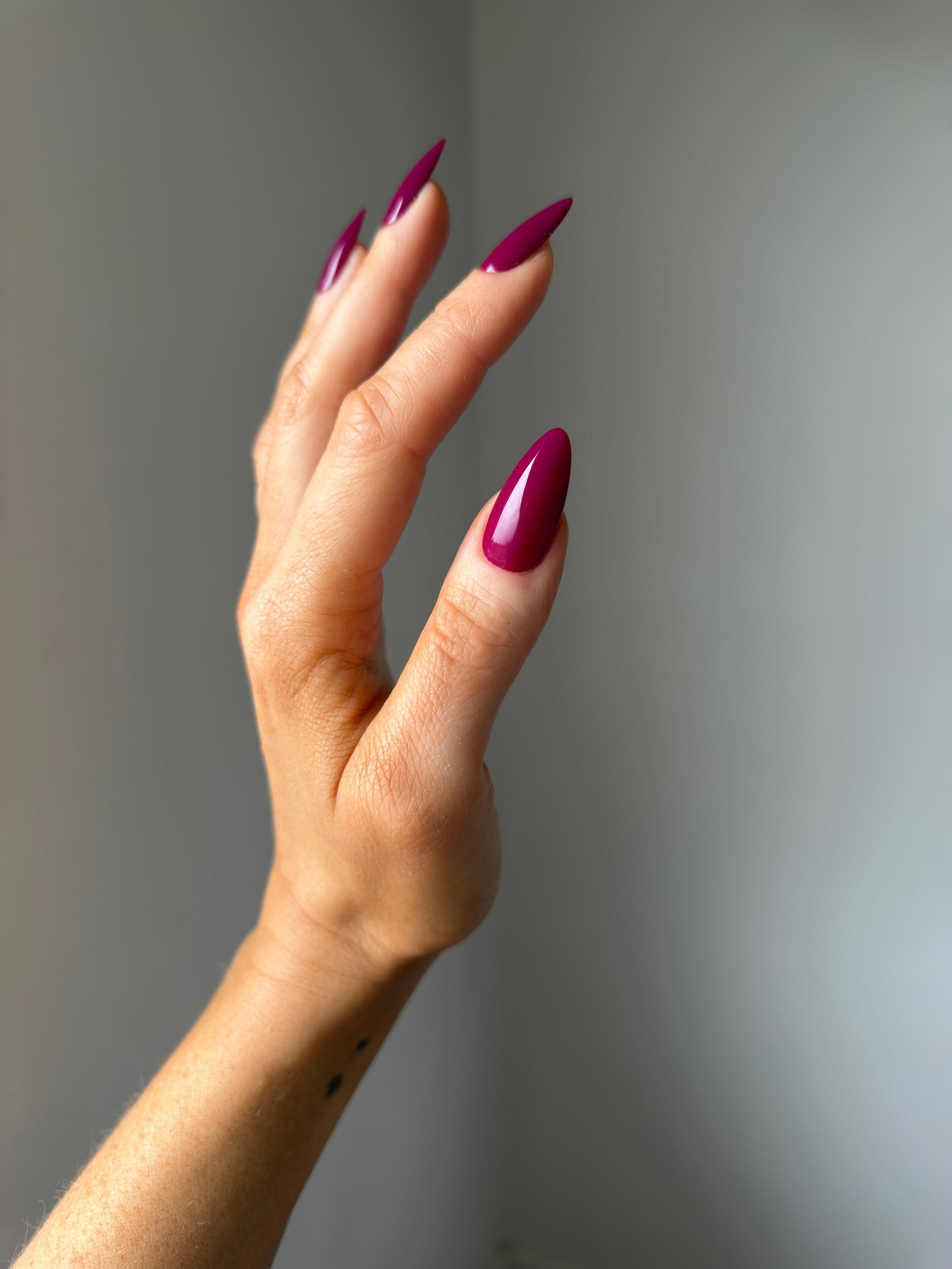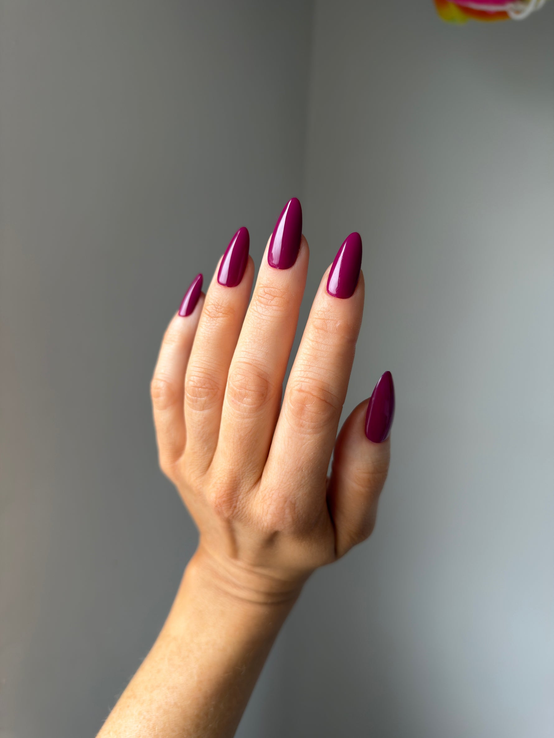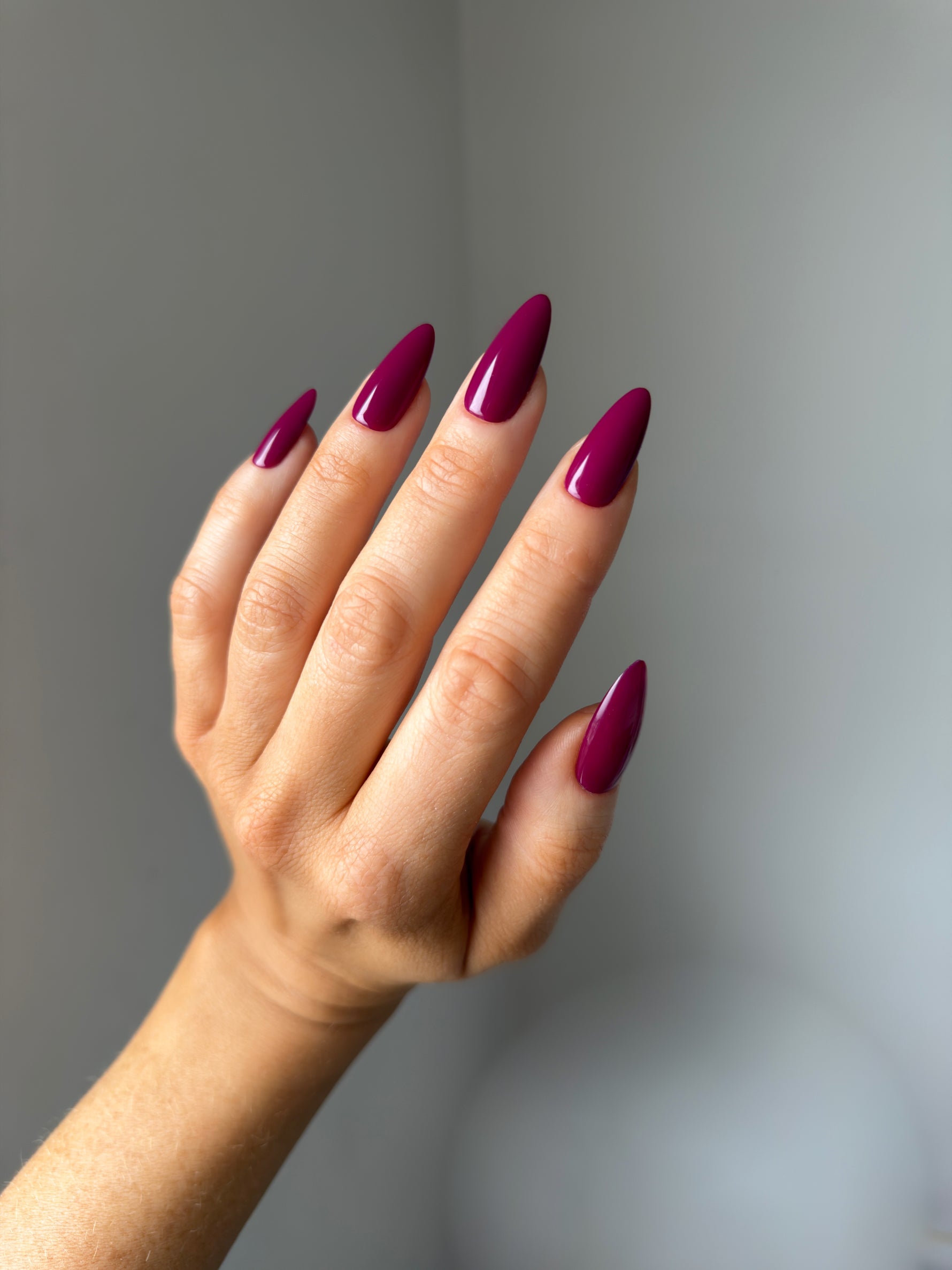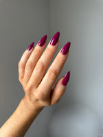 A deep, velvety wine shade with a warm undertone.