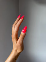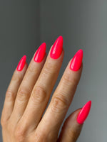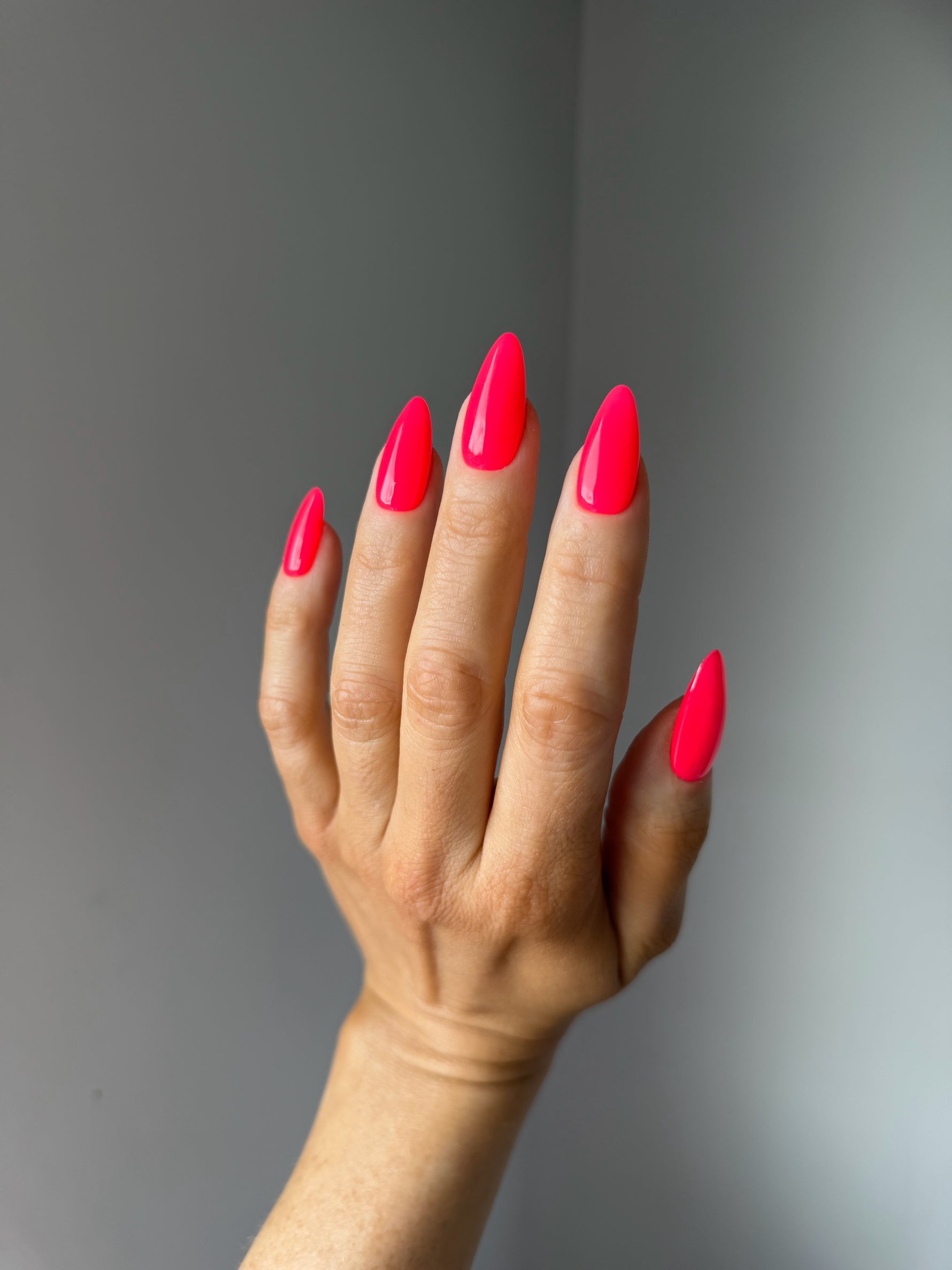 Hot fuchsia pink with a vivid cool undertone and a high-impact finish.